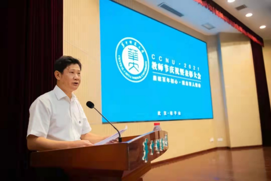 老师们,同学们,同志们!党和国家高度重视教育和教师。党的十八大以来,以习近平同志为核心的党中央把教育的全局地位、教师的战略地位、教师的职业标准和教师的育人责任提到前所未有的高度。中共中央、国务院《关于全面深化新时代教师队伍建设改革的意见》明确提出,到2035年培养造就数以百万计的骨干教师、数以十万计的卓越教师、数以万计的教育家型教师。习近平总书记在全国教育大会上对教师队伍建设提出了明确要求。作为教育部直属重点师范大学,学校担负着为国家基础教育培育卓越教师、未来教师和大国良师的国家使命和时代重任,我们要以更大的力度、更实的举措加强教师队伍建设。我们将实施学者名师计划,加强高层次人才培育和引进,努力建设高素质教师队伍;我们将加强对青年教师生活关心和职业发展指导,为广大教师成长发展创造良好环境,让每一位老师在华师充分实现人生价值;我们将出台系列人事人才制度和政策,加强师德师风建设,努力为广大教师建设安心、安宁、安静的生活、工作条件,不断提升广大教职工的获得感和幸福感。