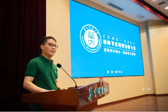 金色九月,桂子山下青春洋溢。首先,在第37个教师节来临之际,请允许我代表2021年所有新进教师,向在座的所有老师们道一声:教师节快乐!祝愿各位老师工作顺心,桃李满园。我是华中师范大学化学学院2021年新进教师舒超,今天能够在这里作为新进教师代表发言,我感到无比的荣幸与激动,感谢学校领导给我这个宝贵的机会。前面郝校长的讲话慷慨激昂,鼓舞士气,为华师未来的发展指明了新的前进方向,也带给了我们新教师更大的信心和激励。今年是我进入华师的第一年,今天也是我在华师度过的第一个教师节,万般情愫涌上心头,这里我想用感恩、责任和决心谈谈自己的一点心得体会。